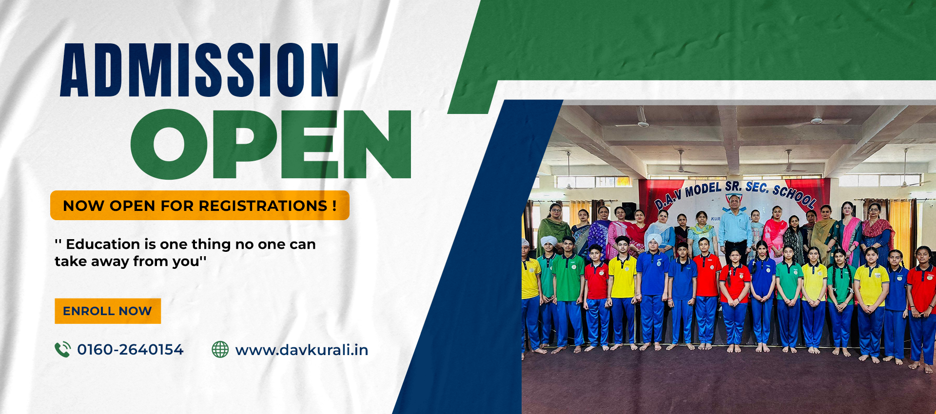 D.A.V MODEL SR. SEC. SCHOOL, Kurali is established and administered by local D.A.V Managing committee for the last 53 years for imparting knowledge about concepts and facts relating to different subjects for developing skills in area of language and communication and also interests in hobbies and sports. The ultimate destination of Education and Learning, situated in the heart of town, is now equipped for quality education. The aim of the school is to develop inherent ability of each child to the best advantage both for himself and society. The school has well-designed modern building with hi-tech educational facilities. It is now our moral responsibility to see that the students who join us get full attention and are able to translate their dreams into reality.